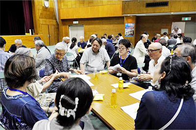 当日は梅雨明けで30度を超す猛暑の中46名の学年連絡担当者の皆様にお集まりいただきました。学校からは浅野学園長はじめ横山初等学校校長、鈴木中学校校長、土居初等学校教頭、本田中学校教頭の先生方が日曜日にもかかわらずご出席いただき開催準備ほか多々お力添えをいただきました。