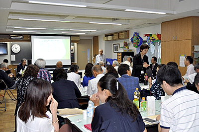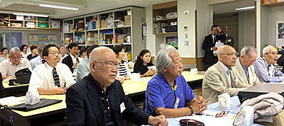 当日は梅雨明けで30度を超す猛暑の中46名の学年連絡担当者の皆様にお集まりいただきました。学校からは浅野学園長はじめ横山初等学校校長、鈴木中学校校長、土居初等学校教頭、本田中学校教頭の先生方が日曜日にもかかわらずご出席いただき開催準備ほか多々お力添えをいただきました。